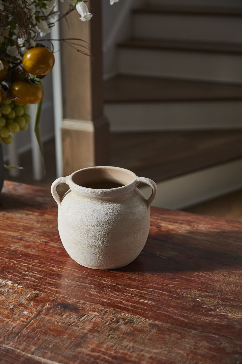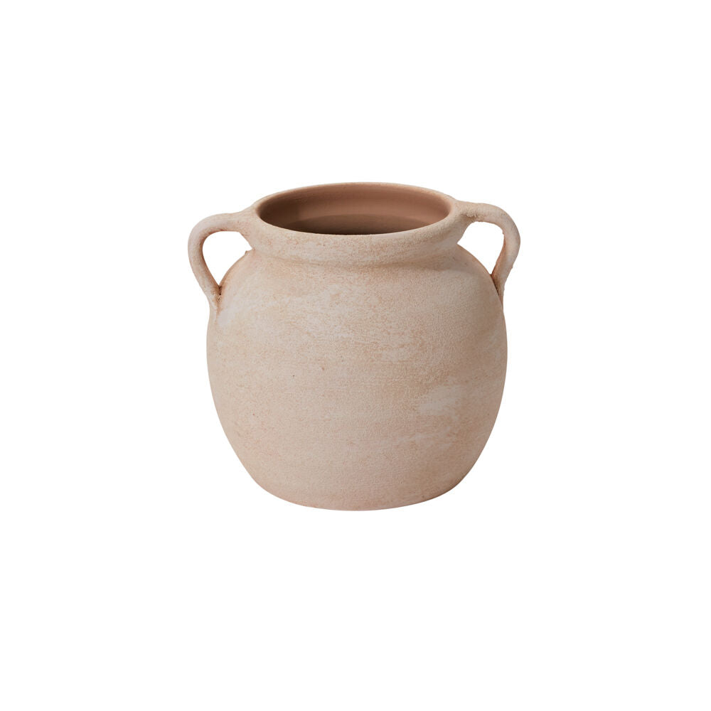 iscover the timeless appeal & old-world, sculptural design of the small ceramic Amphora Vase. Handmade by artisans in Portugal, this 2-handled vase features a classic round silhouette & a faded terracotta shade with a sandy texture. Arrange with statement branches or florals as a standalone decorative piece.